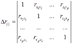 Возможно также при линейной зависимости определение совокупного коэффициента корреляции через матрицу парных коэффициентов корреляции: