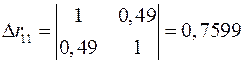. Для этого сначала найдем определитель матрицы парных коэффициентов корреляции: