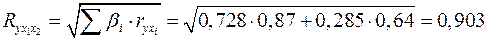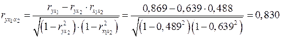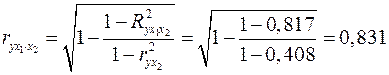 Тогда коэффициент множественной корреляции по формуле (2.16):