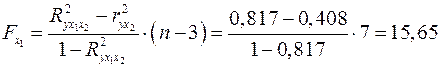 Взаимосвязь показателей частного коэффициента корреляции, частного -критерия и -критерия Стьюдента для коэффициентов чистой регрессии может использоваться в процедуре отбора факторов. Отсев факторов при построении уравнения регрессии методом исключения практически можно осуществлять не только по частным коэффициентам корреляции, исключая на каждом шаге фактор с наименьшим незначимым значением частного коэффициента корреляции, но и по величинам и. Частный -критерий широко используется и при построении модели методом включения переменных и шаговым регрессионным методом.