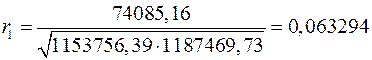 Теперь вычисляем коэффициент автокорреляции первого порядка по формуле (4.1):