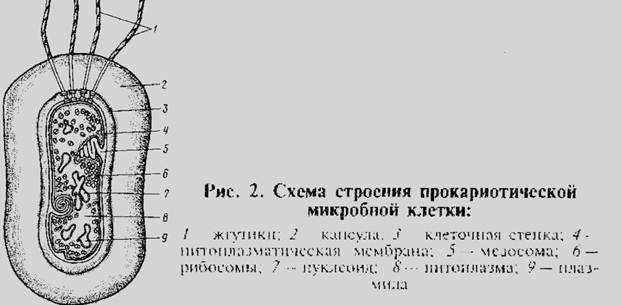 Строение микробных клеток. Ввиду малых размеров строение микробов в течение долгого времени не было изучено. С появлением электронного микроскопа и ультрамикротома, при помощи которого можно делать очень тонкие срезы, представилась возможность глубже проникнуть в микромир. В результате было установлено, что микробные клетки имеют такое же сложное строение, как и клетки животных и растений (рис.2).