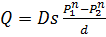 Если с двух сторон стенки, выполненной из однородного материала, имеется перепад давления, то через такую стенку будет иметь место диффузионные поток газа Q, равный: