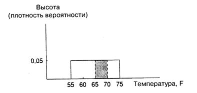 Проиллюстрируем наши рассуждения на примере температуры в комнате. Для определенности предположим, что она меняется в пределах от 55 до 75° по Фаренгейту, и вначале допустим, что все значения в этом диапазоне равновероятны.