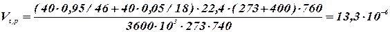 Vt,p - расход исходных веществ, поступающих в реакционный аппарат при температуре и давлении в аппарате, м3/с.