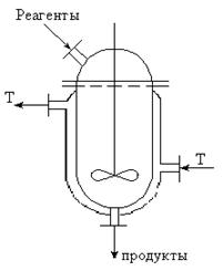 В реакторе периодического действия все реагенты вводят в реактор до начала реакции, смесь выдерживают в реакторе необходимое время, после чего производится выгрузка продуктов. Продолжительность операции от момента загрузки до момента выгрузки соответствует времени реакции. Обычно параметры технологического процесса в периодическом реакторе изменяются во времени. Недостатки периодических реакторов – цикличность работы, низкая производительность, большие затраты ручного труда. Такие реакторы выгодны при организации малотоннажных производств, т.к. в ходе операции можно строго следить за параметрами, поддерживая их на оптимальном уровне.