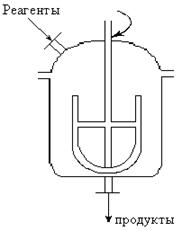 Реактор полунепрерывного (полупериодического) действия характеризуется тем, что один из реагентов поступает в него непрерывно, а другой – периодически. Возможны варианты, когда реагенты поступают в реактор периодически, а продукты реакции выводятся непрерывно, или наоборот.