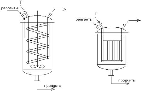 В случае необходимости подвода или отвода тепла предусматриваются теплообменные устройства в реакторах. В качестве таковых используются рубашки или теплообменники внутри реактора в виде змеевиков или секций трубок (е)