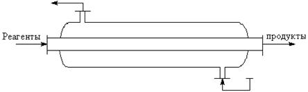 Реакторы вытеснения – трубчатые аппараты, достаточно большой длины по сравнению с диаметром. В таких аппаратах течение реакционного потока имеет поршнеобразный характер. Перемешивание в таких реакторах имеет локальный характер и вызывается неравномерностью распределения скорости потока и его флуктуациями, а также завихрениями.