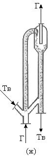 и комкования мелких частиц – в псевдоожиженном (г) или фонтанирующем (д) слоях, с распылительным инжектированием твердого материала через специальную форсунку (е) и в режиме пневмотранспорта (ж).