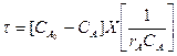 Для проточного реактора идеального смешения при заданной глубине превращения среднее время пребывания в соответствии с уравнением (13) можно определить как произведение двух постоянных величин