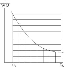 и осью абсцисс. Из рисунка видно, что площади, соответствующие времени пребывания в реакторе вытеснения, заметно меньше площади, соответствующей времени в реакторе смешения для достижения одного и того же результата. Следовательно, при равном объемном расходе реактор идеального вытеснения должен иметь меньший объем. Таким образом, реакторы идеального вытеснения характеризуются более высокой производительностью, чем реакторы идеального смешения.