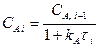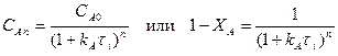 Умножим обе части уравнения (14) на СА 0 и примем, что реакция идет без изменения объема, а все реакторы имеют одинаковый объем. Тогда имеем