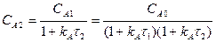 Рассмотрим производительность каскада прямоточных реакторов полного смешения, взяв для примера простейшую реакцию первого порядка с участием реагента А.