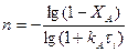 можно рассчитать число секций заданного объема, необходимых для достижения заданной степени превращения ХА: