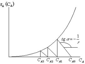 Если возникает обратная задача определения числа секций, необходимого для достижения заданной степени превращения ХА (СА), графическое построение продолжают до тех пор, пока абсцисса точки пересечения прямой