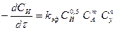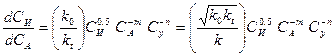 , а общая скорость реакции имеет по нему половинный порядок, например