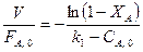 В соответствии с кинетикой процесса, получим для реактора идеального вытеснения