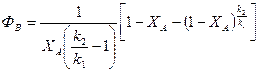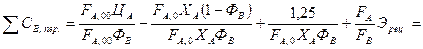 , оптовая цена за катализатор равна ЦА = 20 руб/кмоль. Энергетические затраты на выделение и рециркуляцию непрореагировавшего вещества А составляют 3 руб/кмоль, амортизационные отчисления по реакционному узлу стадии отделения непрореагировавшего вещества А и его рециркуляцию описываются уравнением