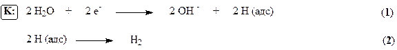 При реализации этого процесса на катоде в соответствии с значениями электродных потенциалов протекают следующие процессы: