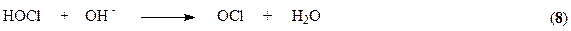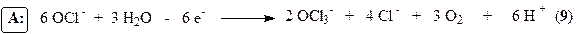 Образующийся в результате этой последовательной реакции гипохлорит анион претерпевает анодное окисление