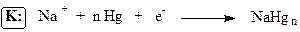 На ртутном катоде электродные реакции (1) и (2) идут с большим перенапряжением – потенциал разряда составляет 1,7 – 1,8 В. Натрий выделяется на ртутном катоде с большим эффектом деполяризации и потенциал разряда Na + на ртути много ниже стандартного и равен 1,23 В. Явление деполяризации ртутного катода обеспечивается тем, что разряд ионов натрия происходит с образованием химического соединения – амальгамы натрия