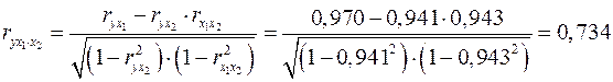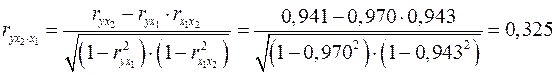При двух факторах частные коэффициенты корреляции рассчитываются следующим образом: