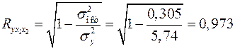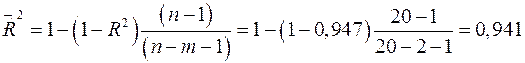 определяет тесноту связи с учетом степеней свободы общей и остаточной дисперсий. Он дает такую оценку тесноты связи, которая не зависит от числа факторов и поэтому может сравниваться по разным моделям с разным числом факторов. Оба коэффициента указывают на весьма высокую (более