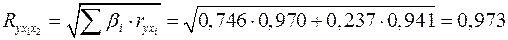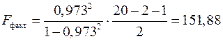 Коэффициент множественной корреляции показывает на весьма сильную связь всего набора факторов с результатом.