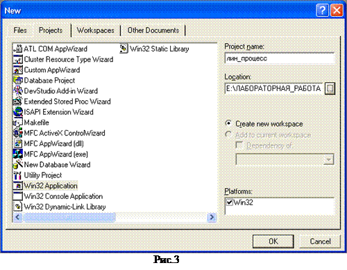 2. Выбрать пункт меню File, в появившемся подменю выбрать New. Появится диалоговое окно (рис.3).