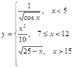 Пример 1. Разработать алгоритм и составить по нему программу для вычисления значений функции y = f(x). Необходимо учитывать область определения функции: