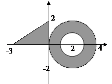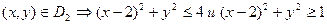 (внутренняя окружность). Так как область D2 находится внутри кольца, включая его границы, то условием принадлежности точки (х,у) области D2 будут неравенства: