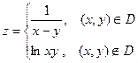 Пример 2. Разработать алгоритм и составить по нему программу для вычисления значений функции z = f(x,y) в зависимости от попадания точки с координатами (х,у) в область D (область D выделена серым цветом):