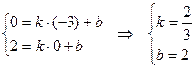 . Найдем уравнение прямой, проходящей через точки с координатами (-3;0) и (0;2). Запишем уравнение прямой в общем виде