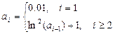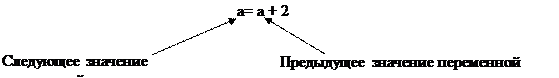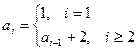 . Читается формула так: при i= 1 ai= 1; при i≥ 2 ai=ai- 1 + 2, т.е. каждый последующий элемент равен сумме предыдущего и 2.