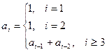 а 1 = 1, а 2=1, …, аi=ai -1 +ai -2, ….