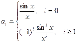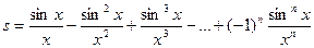 | Объявление цел: i, n; вещ: х, s, а //ввод количества элементов ввод n ввод x //начальное значение номера элемента //последовательности i=0 //начальное значение элемента // последовательности а=sin(x)/x //начальное значение суммы элементов //последовательности s=a //цикл для вычисления элементов и суммы //последовательности для i=1 до n шаг 1 a= (-1)isini(x)/xi s=s+a всё_для i //вывод полученной суммы на экран печать s | #include "stdio.h" #include "math.h" int main () { int i, n; float x, s, a; printf("n="); scanf("%i",&n); printf("x="); scanf("%f",&x); // инициализация переменных i=0; a=sin(x)/x; s=0; //цикл для вычисления элементов и //суммы последовательности for (i=1;i<=n;i++) { a=pow(-1,i)*pow(sin(x),i)/pow(x,i); s=s+a; } //вывод полученной суммы на экран printf("s=%f \n", s); return 1; } |