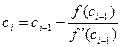 . Пусть первая координата т.С(сi;0) – корень уравнения f(x)=0. Подставим координаты точки C в полученное уравнение. В итоге получаем уравнение для получения значений точек сi при вычислении корня исходного уравнения: