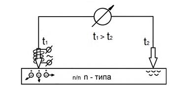 Рис. 4. Схема определения типа проводимости полупроводника по знаку термо – ЭДС.