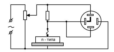 Рис. 3. Схема определения типа проводимости полупроводника по направлению выпрямленного тока.