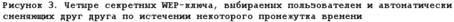 Строго говоря, для шифрования используется не один секретный ключ, а целых четыре, последовательно назначаемых пользователем при конфигурации беспроводного оборудования. Смена ключей происходит произвольным образом (номер ключа передается вместе с зашифрованным пакетом), но на безопасность передачи данных это никак не влияет. Если хакер сможет взломать один ключ, он сломает и четыре (см. рис. 3).