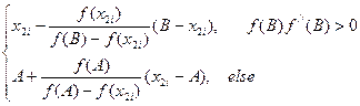 ПРИ: f(A)f(B)<0 (признак того, что отрезок [A,B] выбран верно)