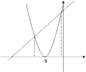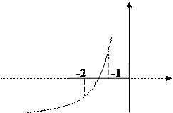 По рисунку видно, что графики пересекаются в двух точках, абсцисса которых отрицательна, т.е. исходное уравнение имеет два отрицательных действительных корня, что соответствует предыдущему исследованию. По рисунку определим интервалы, которым принадлежат абсциссы точек пересечения графиков функций: