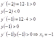 Проверим знак функции на границе области существования и в точках, подозрительных на критические. Определим отделенные отрезки и сузим их.