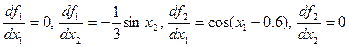 x2 =sin(x1-0,6) -1,6= f2(x1, x2)
