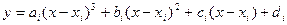 Метод сплайнов заключается в нахождении функции (сплайна), которая состоит из ряда полиномов, своих для каждого интервала. Полиномы соседних интервалов стыкуются так, чтобы функция была непрерывной. Т.е. строится система уравнений, в которой значения функций для каждого интервала в узлах интерполяции совпадают. Дополнительными условиями для поиска коэффициентов полиномов является непрерывность нескольких производных. Например, кубический сплайн склеивается из полиномов третьей степени, которые для i-го участка записываются так: