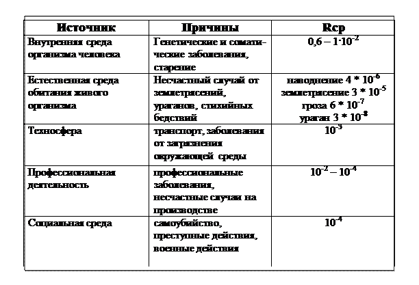 Классификация источников и уровней риска смерти человека в