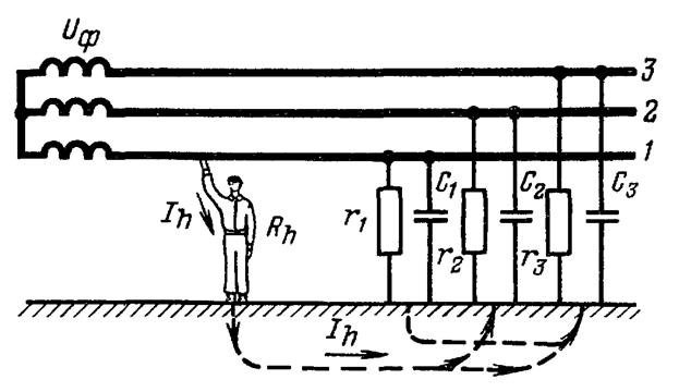 При одинаковом сопротивлении изоляции каждой фазы Σ определяется по формуле: