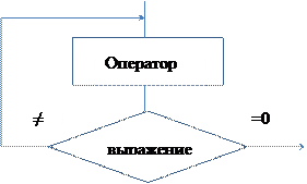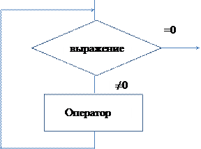 Выражение должно быть арифметическим. Выражение вычисляется и, если значение выражения не равно нулю, то выполняется оператор. После этого управление снова передается на проверку условия. Тело цикла выполняется до тех пор, пока значение выражения не станет равным нулю. Если в цикле надо выполнить несколько операторов, то их заключают в фигурные скобки.