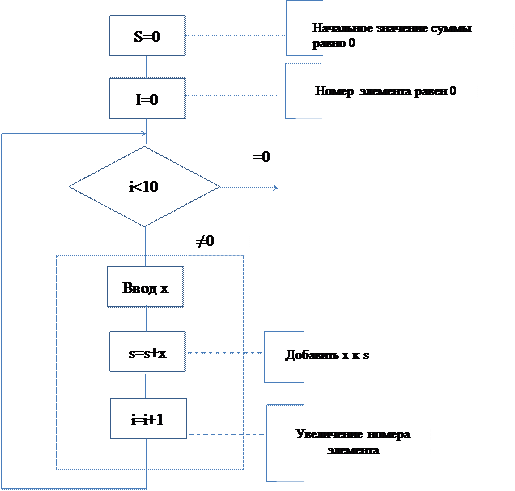 Пунктирной линией выделено тело цикла. Оно состоит из двух операторов, поэтому эти операторы надо взять в фигурные скобки.